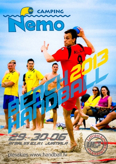 17th international beach handball tournament "Nemo" will be held from 29.06. - 30.06.2013. at the Beach Vaivari (Atbalss iela 1), Jūrmala (35 km from Riga).
